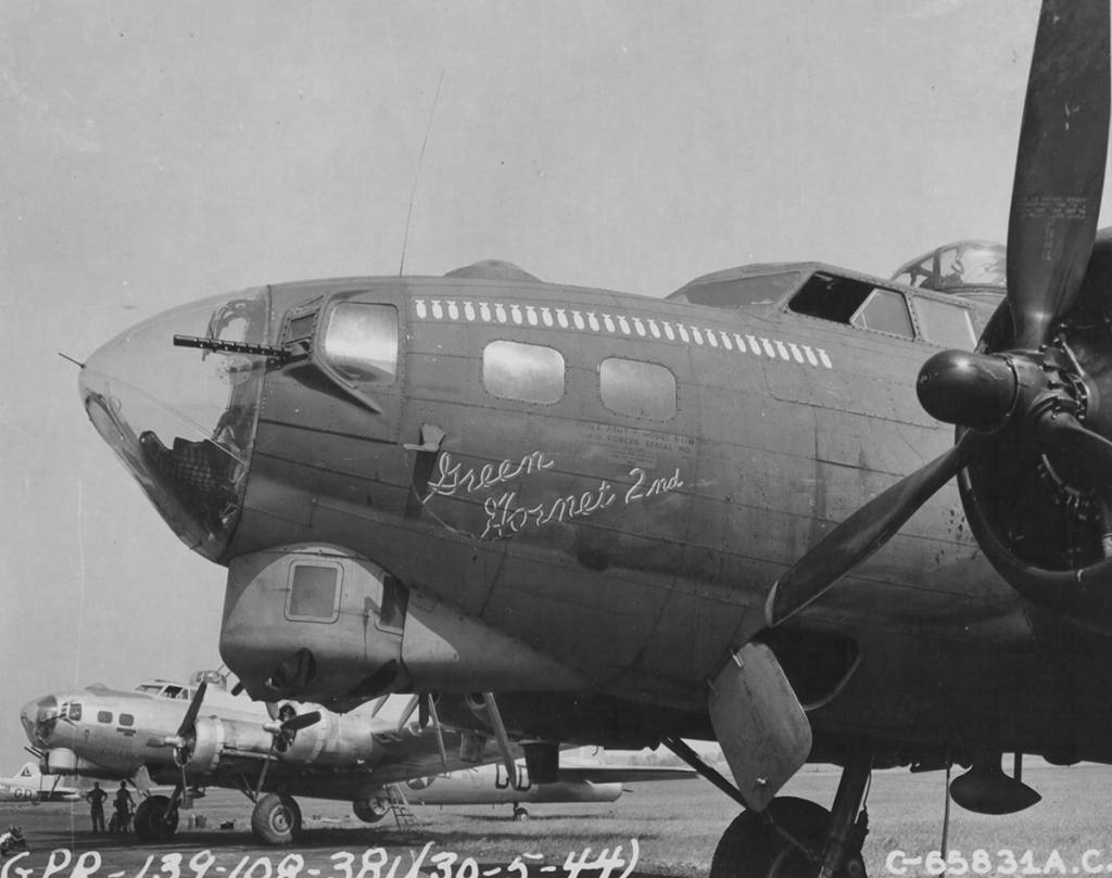 Delivered Denver 21/11/43; Kearney 14/12/43; La Guardia 21/12/43; Presque Is 23/12/43; Assigned 534BS/381BG [GD-G] Ridgewell 13/1/44; Missing in Action [55M] Cologne 17/10/44 with Rice; flak, force landed Speelberg, near Holsbeek, NE of Louvain, Bel. some crew bailed, 2WIA but all OK; Salvaged 21/11/44. GREEN HORNET 2ND.