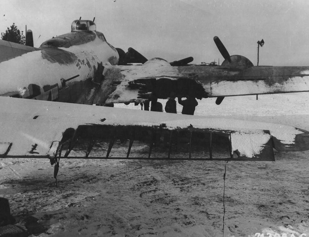 Delivered Cheyenne 27/8/44; Hunter 17/9/44; Dow Fd 25/9/44; Assigned: 527BS/379BG [FO-F] Kimbolton 2/1/45; battle damage Cologne 28/1/45 Pilot: '; crash-landed Woodbridge ALG, UK w/pilot only, rest of crew bailed over enemy territory; Salvaged.