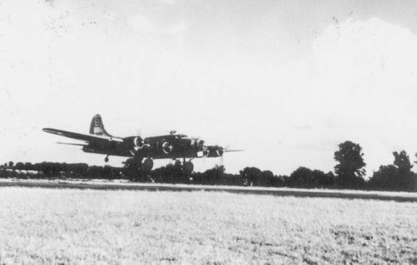 Delivered Cheyenne 16/3/44; Kearney 1/4/44; Dow Fd 8/4/44; Assigned 534BS/381BG [GD-A] Ridgewell 24/4/44; Missing in Action 12m Tours 24/6/44 with Vic Romasco, Navigator: Jim Chandler, Flight engineer/top turret gunner: Elbert Giddens,Tail gunner: Ernie Waldow (4 Prisoner of War); Co-pilot: Dick Kellum, Radio Operator: Paul Cosandier, Ball turret gunner: Grover Scoggins, Waist gunner: Harry Owens (4 Killed in Action); Bombardier: Ray Stewart (evaded capture) flak hit in radio room, crashed Valleres-le-May, 12 miles SW of Tours, Fr; Missing Air Crew Report 6534. THE BETTY L.