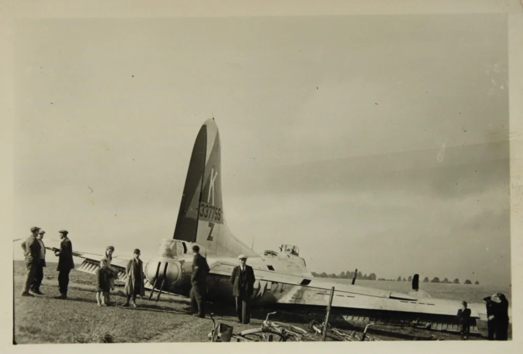 Delivered Cheyenne 18/5/44; Kearney 29/5/44; Grenier 4/6/44; Assigned 526BS/379BG [LF-Z] Kimbolton 28/6/44; battle damaged Merseburg 13/9/44 with Capt Bob Layton, Co-pilot: Harry Greiner, Navigator: Wayne EhlersWounded in Action, Exn-Tony Chong, Bombardier: Tom Carruth, Flight engineer/top turret gunner: John KoruskoWounded in Action, Radio Operator: Jack Morgan, Ball turret gunner: Lloyd Shaeffer, Waist gunner: Ray McCarthy,Tail gunner: Lt Bob HagenWounded in Action, (10 Returned to Duty); force landed near Ciney, SE of Namur, Belgium; Salvaged 13/2/45. EVERYBODY’S BABY.